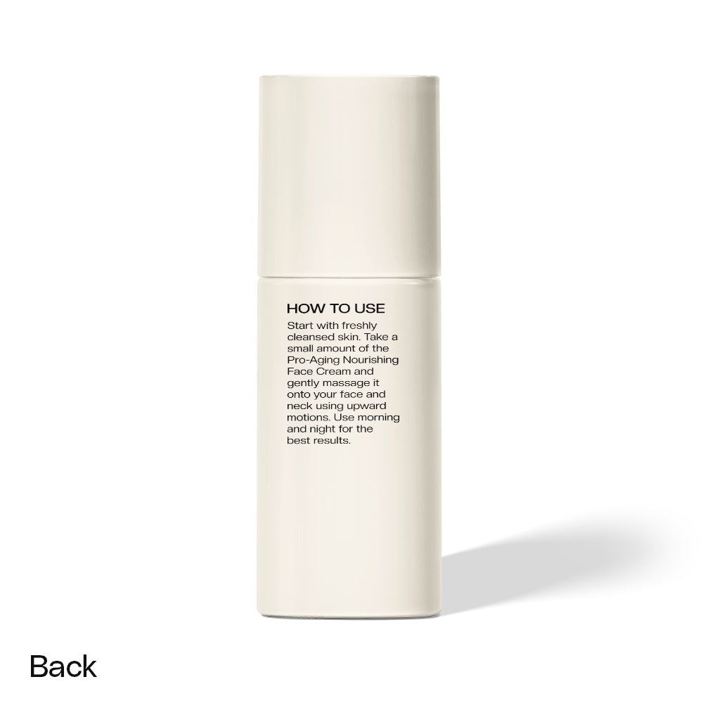 Start with freshly cleansed skin. Take a small amount of the Pro-Aging Nourishing Face Cream and gently massage it onto your face and neck using upward motions. Use morning and night for the best results.